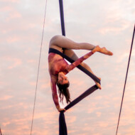 María Resa nació en Bello, Teruel, y vivió en este pueblo de menos de 150 habitantes hasta los 18 años, cuando marchó a Valencia para estudiar veterinaria. Allí conoció las artes circenses y encontró su pasión en las telas aéreas. Desde entonces, se ha formado en esta disciplina aérea en diferentes escuelas circenses de ciudades como Valencia, Murcia o Madrid.